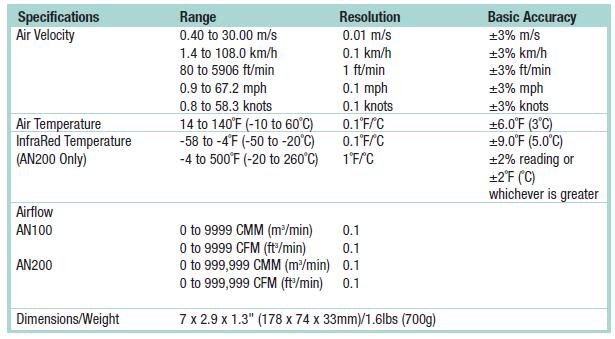 美國(guó)EXTECH AN100葉輪風(fēng)速儀的技術(shù)參數(shù)