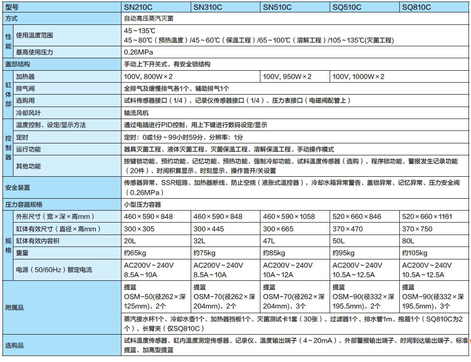 SN210C日本yamato立式壓力蒸汽滅菌器的技術(shù)參數(shù):