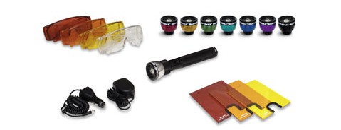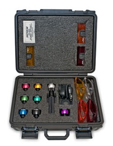 OFK-8000 OPTIMAX™ Multi-Lite™ 多波段警用檢查套裝配有結(jié)實(shí)的黑色陽(yáng)極化鋁手電殼體、八個(gè)可快速更換的LED燈頭(UV-A(長(zhǎng)波紫外)、紫光、藍(lán)光、藍(lán)綠光、綠光、琥珀光及白光)、三個(gè)插入式濾色板(黃色、橙色及紅色)、交流及直流充電器、四個(gè)眼鏡(紫外防護(hù)、橙色、黃色及紅色眼鏡)及一個(gè)帶泡墊的手提箱.。