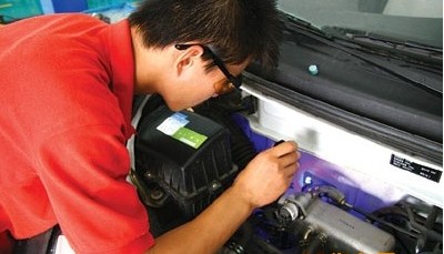 下圖為工作人員使用宏聲HsTech手電筒式BH-1320高強(qiáng)度紫外燈檢測泄漏圖: