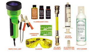 1套MINI-EZ通用加入裝置(TP-9891) 6管7.5 ml(TP-9875)通用型空調(diào)檢漏劑(每管檢測14輛達(dá)0.9 公斤制冷劑或達(dá)150 毫升壓縮機(jī)潤滑油汽車) 1瓶 30 ml(TP-3400)通用油基流體檢漏劑 1瓶 30 ml(TP-3900)水基流體檢漏劑 1付(TP-9940)紫外防護(hù)及熒光增強(qiáng)眼鏡 1個(gè)塑料手提箱(TP-1143)