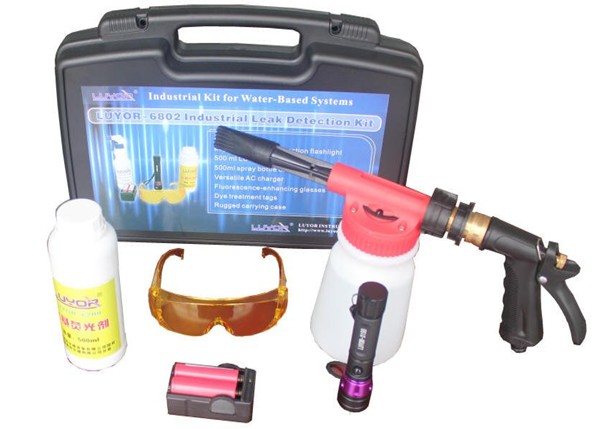 LUYOR-6812車體車窗水滲漏檢測套裝包括: LUYOR-3150紫外檢漏燈 1支LUYOR-3030水噴槍 1瓶 500 ml(LUYOR-6200-00500)水基流體檢漏劑 1付(LUV-30)紫外防護及熒光增強眼鏡 LUYOR-3002 1個塑料手提箱