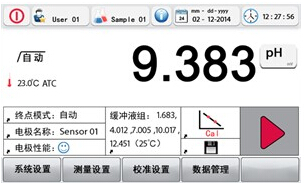 所有pH測量和校準相關(guān)的重要信息都清晰地顯示在4.3寸的彩色大液晶屏上。一次簡單觸摸即可進行測量、校準,或者在不同測量模式切換,隨機可見,如:電極狀態(tài)、當前緩沖液組等?珊唵我淮斡|摸,即進入對應(yīng)的樣品名,用戶名,時間日期等的設(shè)置。